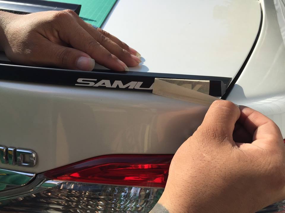 – สปอยเลอร์แนบ ทรง Ducktail จากสำนัก Samurai ติดง่ายๆ ใส่ได้ทุกรุ่น ดัดโค้งได้ตามฝาหลังรถ