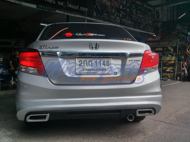 ชุดแต่งรอบคัน Honda Brio Amaze ทรง Dreamer ออกแบบตรงรุ่น Amaze ด้านหลังมีท่อหลอกสไตล์ใบไม้ สวยงามลงตัว