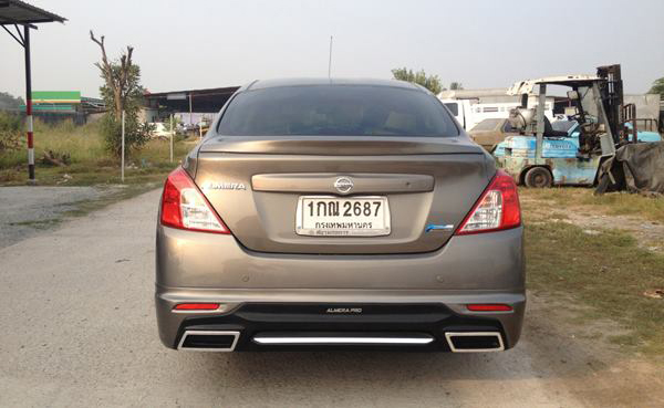 ชุดแต่งรอบคัน Nissan Almera 2014 ทรง Pro เป็นหนึ่งในชุดแต่งรถ ที่ได้รับความนิยมสูงสุดของชุดแต่ง Nissan Almera โฉมนี้ ด้วยดีไซน์ที่แตกต่างสง่างาม ตั้งแต่สเกิร์ตหน้าที่ออกแบบมาอย่างสวยงาม และเพิ่มแรงกดที่ล้อหน้าในขณะขับขี่ที่ความเร็วสูงทำให้รถเกาะถนนมากยิ่งขึ้น สเกิร์ตข้างถูกออกแบบมาเพื่อรีดอากาศให้เข้าใต้ท้องรถน้อยที่สุด ตามหลักอากาศพลศาสตร์ สเกิร์ตหลังออกแบบให้มีความสวยงามลงตัวด้วยท่อใบไม้คู่อลูมิเนียม ที่รับกับคิ้วอลูมิเนียมด้วยเช่นกัน ทุกลายเส้นต่างๆสอดรับกับตัวรถอย่างลงตัว