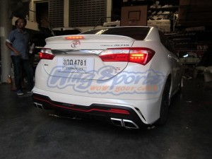 ชุดแต่งรอบคัน Toyota Altis 2014 ทรง Kantara-R ออกแบบตรงรุ่น ด้านหลังงามงดด้วยปลายท่อหลอกสไตล์แฝด ใส่แล้วดูสปอร์ตดุดันขึ้นเยอะ