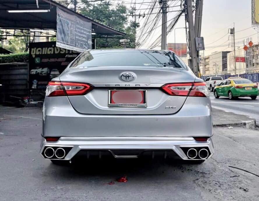 ชุดแต่งรอบคัน Toyota Camry 2018 ทรง Model V.2 เพิ่มความโดดเด่นให้ตัวรถ มีการตัดสีดำ ทั้ง 4 ด้าน เสริมให้ดูโฉมเฉี่ยว ทันสมัยขึ้น และมีชุดท่อหลอก 4 ใบ ติดตั้งแล้วรถดูสปอร์ตขึ้นเยอะมากๆ
