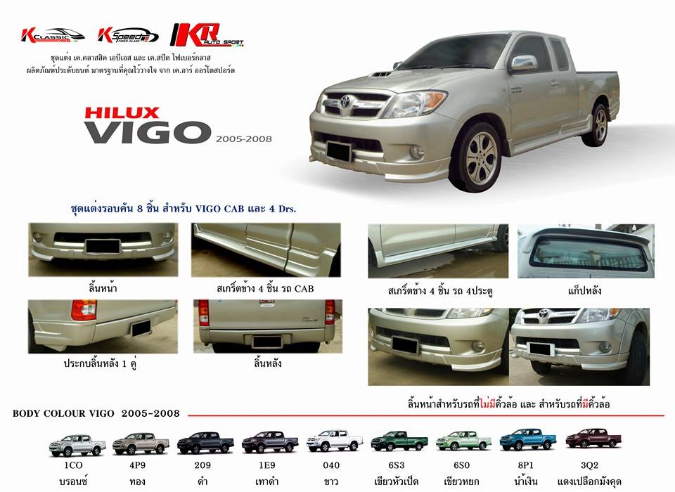 – ชุดแต่งรอบคัน Toyota Vigo ทรง KR ผลิตจาก พลาสติก ABS เกรด A