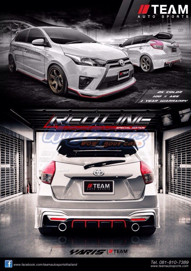 – ชุดแต่งรอบคัน Toyota Yaris 2014 ทรง REDLINE ผลิตจาก พลาสติก ABS เกรดพิเศษสำหรับอุตสาหกรรมยานยนต์ มีน้ำหนักเบา ความทนทานสูง สามารถยืดหยุ่นได้ไม่แตกหักง่าย