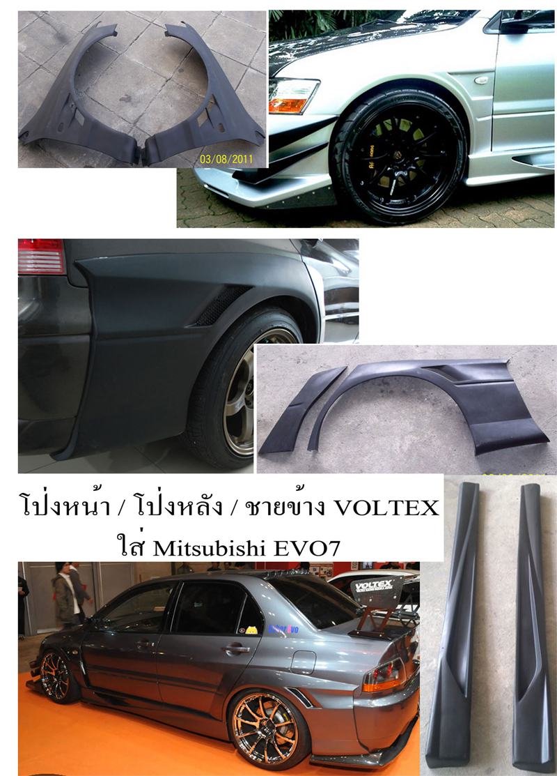 ชุดโป่งหน้า-โป่งหลัง-สเกิร์ตข้าง Mitsubishi Evo7 ทรง Voltex